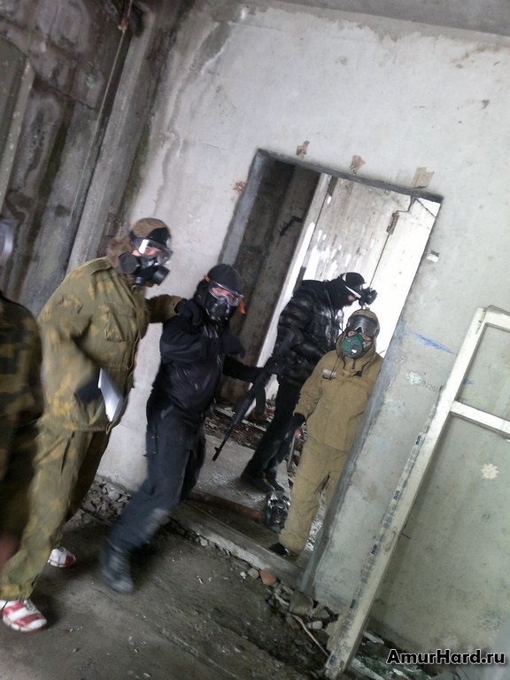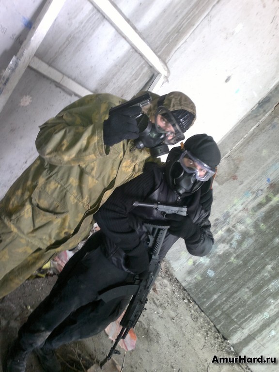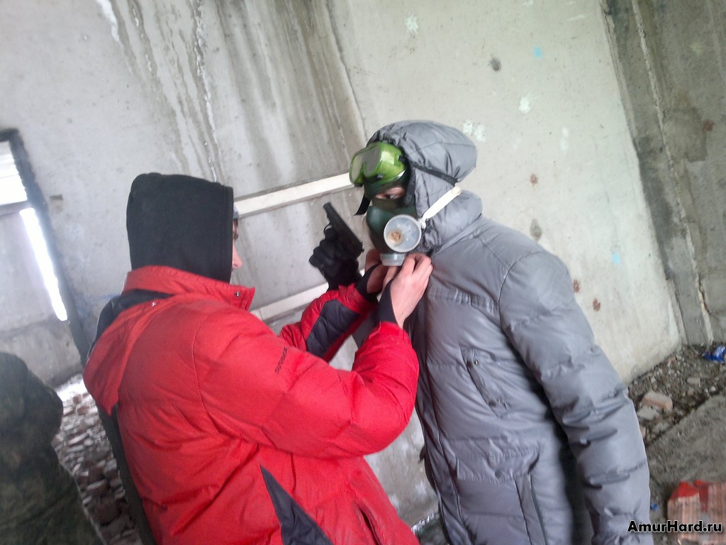 Преодолев трудности пути, мы оказались в нашем сухом и закрытом полигоне. Хорошо, что еще подобные строения совсем не снесли. Было много новичков, даже очень много. Защиты/оружия на всех не хватало. Поэтому приходилось стрелять даже из зажигалок: