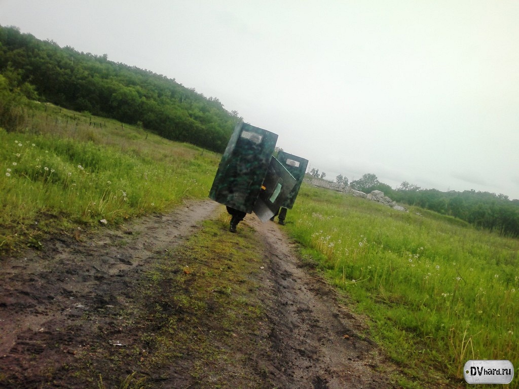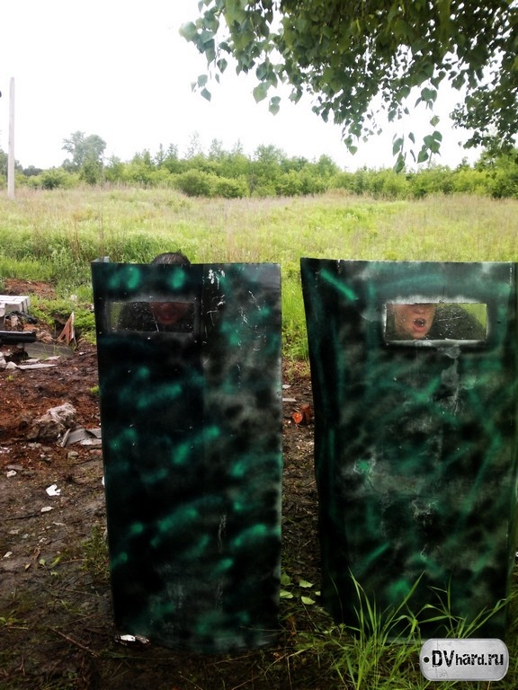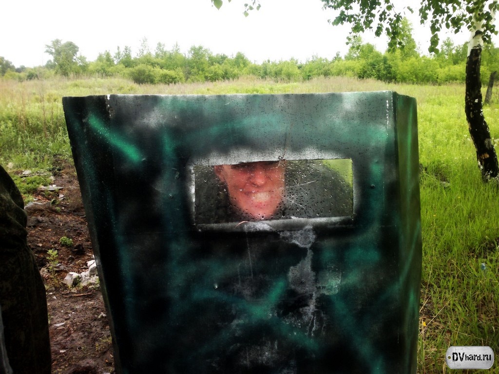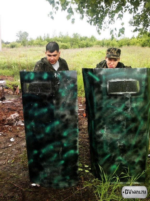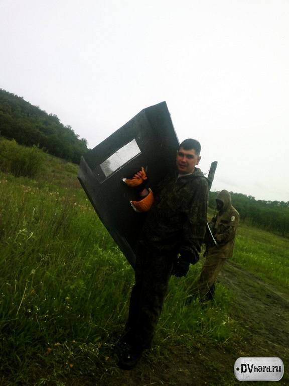 Выдвигаемся на позиции (разумеется, перекусив на дорожку). Снайперы заняли свой стартовый квадрат (И5). Повстанцы движутся к своему старту. Как у настоящих повстанцев, не обошлось и без юмора. По дороге успели потерять комплект защиты, пришлось некоторое время искать. Также было решено взять в бой тактические щиты, по уверению HunteR’a обязательно 3 штуки. Но через 10 метров после старта щиты оставили – тяжелая и неудобная штука для полевых условий. И пока мы продолжаем путь, наш тактический щит передает привет тактическому щиту из г. Нерюнгри. Порадуйте его – он не один на Дальнем Востоке, в Благовещенске у него появилось много сородичей.