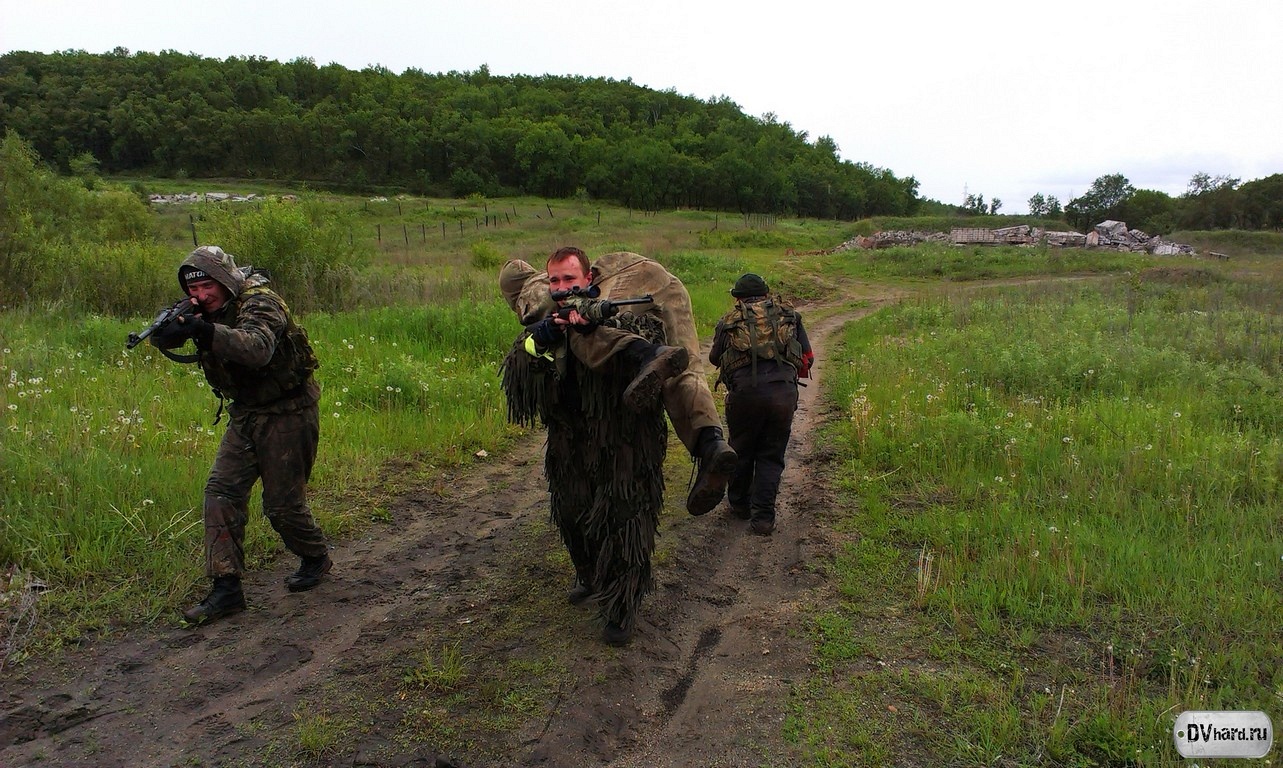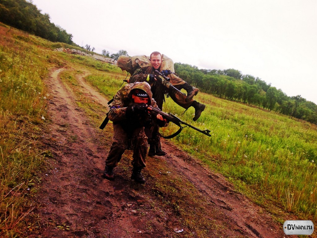 Местность большая, кругом сопки да дороги – лыжная база, примыкающая к полигону. В сопках множество ям и окопов, и везде снова эти дороги – большие и малые. К слову, пока идем на главную дорогу, перемещаться по такой местности оказалось труднее, чем смотреть на карту. Куда идти толком не знаешь, везде трава да грязь, да непонятные перекрестки. Везде мокро – только залег, и уже можно выжимать все внутренности. В берцы забивается грязь, каждый весит по 5 кило… Рай для хардболиста. Хорошо, что дождя нет, а может и есть, особо следить за погодой было некогда – все внимание на противника.
