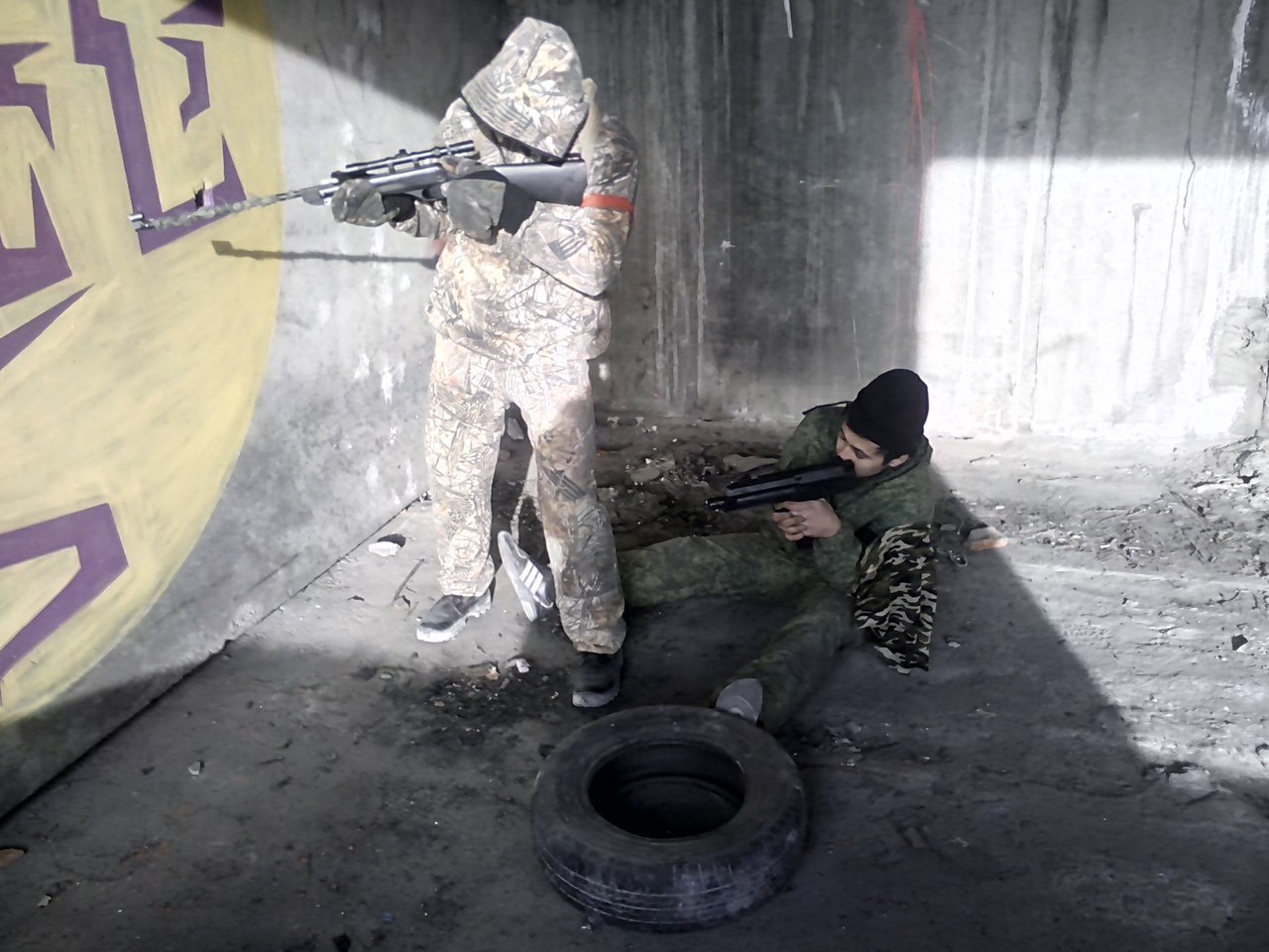А обсуждать сегодня было что, ведь все на полном позитиве с отшибленными головами. Прикрутили уже знаменитому Леону-Копперфильду-Чокопаю новое прозвище "внук Вэйдера", в силу наличия маски МАГ, как и у старшего Вэйдера. Пообсуждали как на тренировках по MMA Лексу вломили люлей по самое не балуй, и при этом он еще мог ориентироваться в пространстве. Поизучали кровавые попадания Меги - человек потерял перчатки, за что жестоко поплатился. Ну с кем не бывает, больной мы немного народ. Басику еще раз кланяюсь за подарки, Васе спасибо, что все -таки их не отобрал. Порадовались возвращению Миши - человек в деле и нагреб как и все кучу фрагов. Поржали с кроссовок Хантера (жаль мобилка сдохла и не сфотали, если что вышлешь покажешь, обязательно в комке). Антуражного Грека в силу поломки ствола пришлось "отправить в лазертаг". Негласно посвятили брата Дезертира в тайну братства убитых хардболистов - человек выступал секундантом на контрольной точке, за что и получил пули от наших щедрых бойцов. Илюха Хирург... ну промолчу я про тебя, спасибо, что посетил))) Все, мозг вырубился вспоминать. Но главное ждало все впереди - дуэль Джонни и Дезертира за право обладания абстрактным Тополем-М.