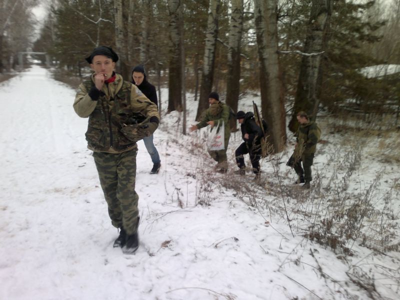 Было 6 человек + 2 местных срочника.