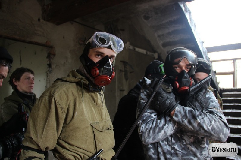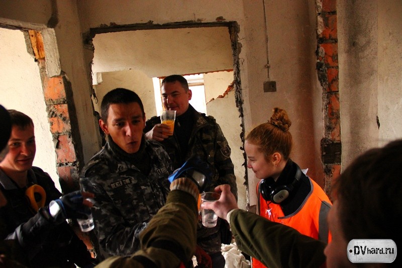 Когда прошел звон в ушах, была предпринята попытка съемки постановочного видео – штурм здания. К сожалению, в связи с ошибкой в расчете количества огненной воды “на душу населения” (мой косяк), на мой взгляд, эта попытка провалилась. Хотя, если обрезать кое-где, смонтировать, может что-нибудь и получится.
