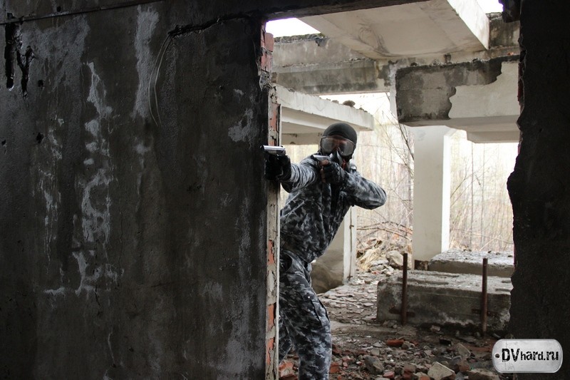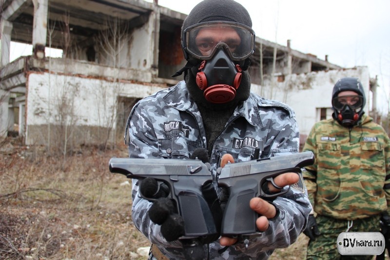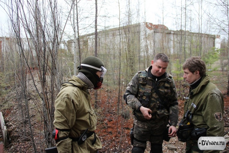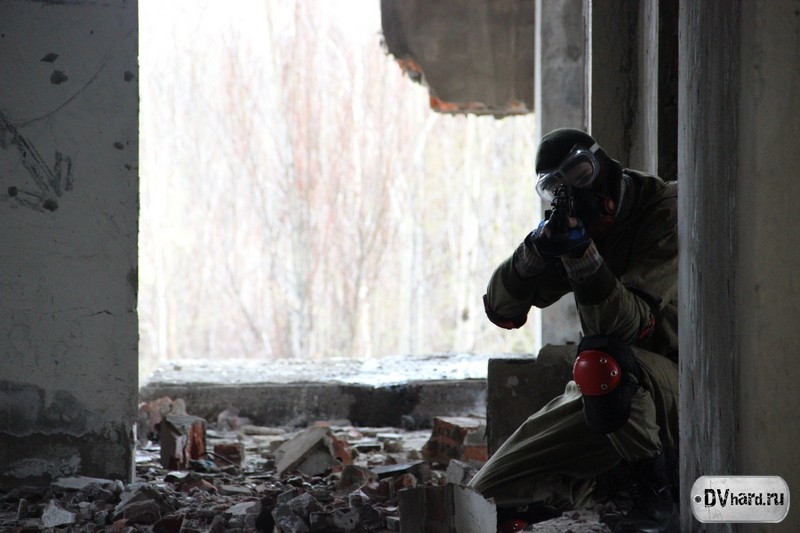 Место проведения, по уже сложившейся традиции, полигон Восточный, полюбившийся нашей командой за наличие достаточно большого двухэтажного здания, развалин и обустроенного крытого “мертвяка”, обозначенного как Бар 100 рентген. В целом полигон имеет постапокалептический вид, что добавляет антуражности событию. Кстати полигон привлекает и братьев по разуму. В самый разгар боевки в Зону попыталась войти страйкбольная команда, но увидев брутальных мужиков, в противогазах и респираторах, вооруженных не приводами, а оружием, в спешном порядке покинула опасное место.