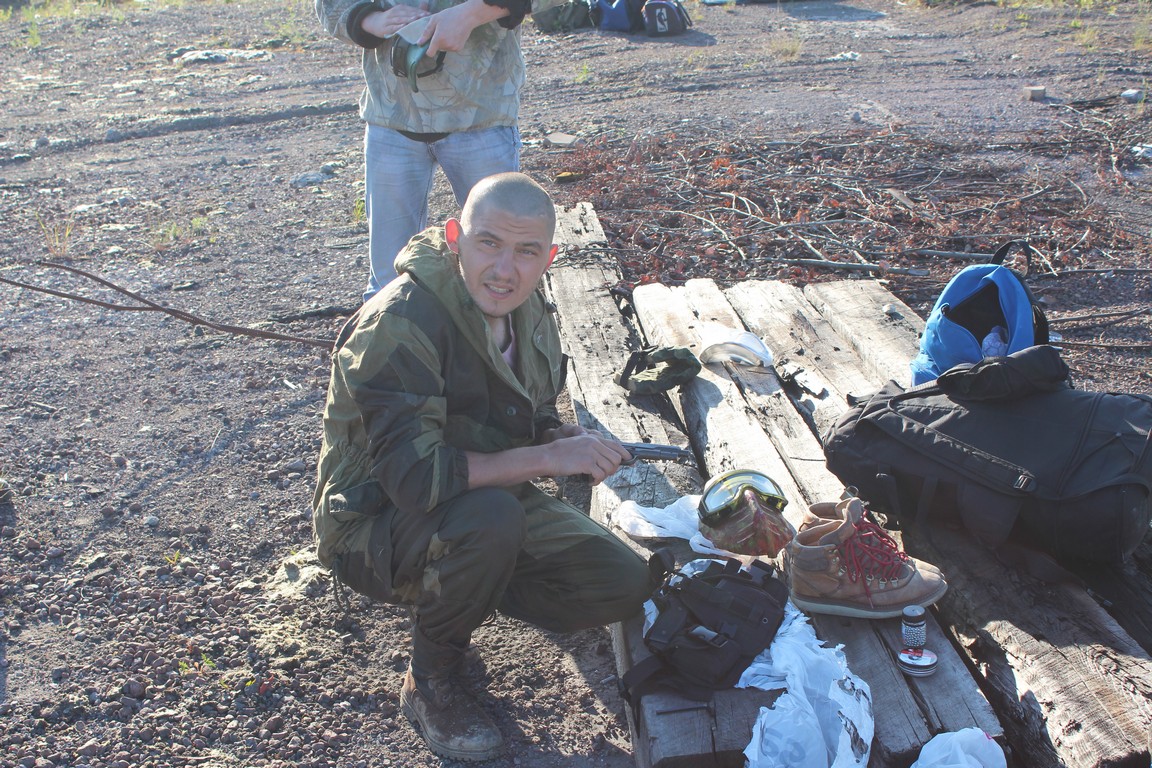 Находясь по пояс в воде, ты можешь спокойно видеть свои пальцы ног, подобного нигде у нас не увидишь. По берегам ни одной живой души, сразу за ним начинается подъем в сопку и океан елочек. На берегу напротив стоит сколоченная кем-то ранее беседка. Вот стоишь ты в воде, классно все до безумия, периодически в голове проплывает мысль забить на дорогу до лагеря. Но идиллию вскоре прекращает налетевшая местная толпа оводов, приходится закрывать водные процедуры и возвращаться в лагерь.