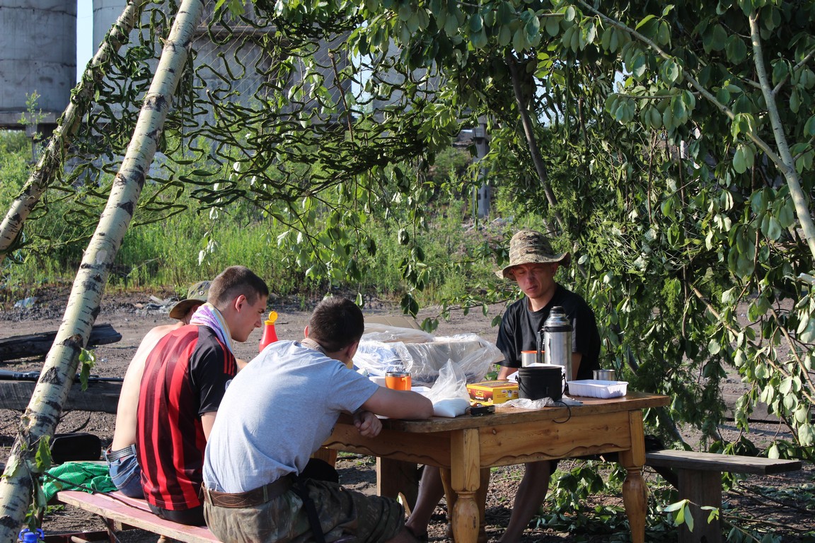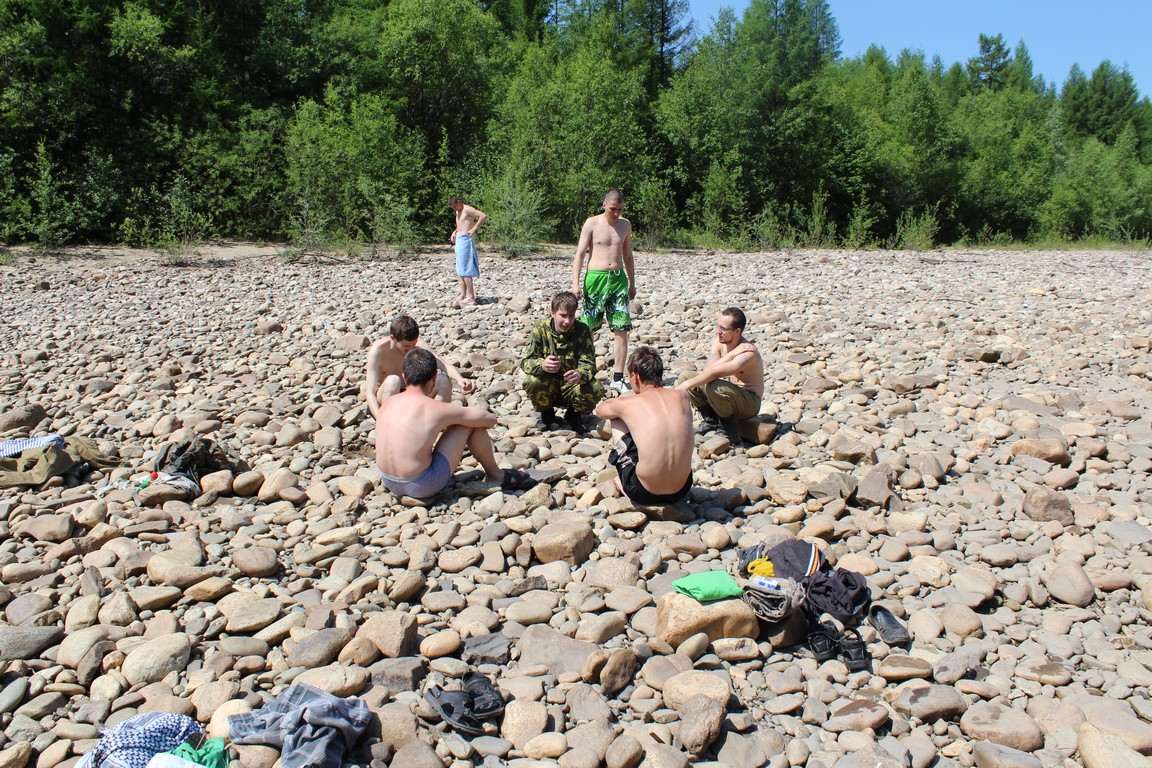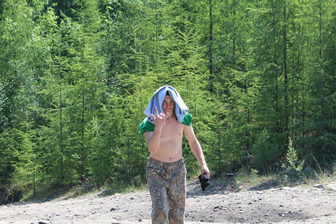 К обеду почти все по лагерю уже было готово, желудки сыты, а в Нерюнгри наступил обеденный «холод». Даже местные мухи нервно шарахались в тень, не говоря уже о хардболистах. По разведданным от Кирилла в паре километров от места базирования протекала пригодная для купания речка. Туда и было решено выдвигаться. После поезда меня почему-то срубило в сон, поэтому именно этот поход я пропустил и честно отоспался. Но про речку мы поговорим чуть позже.
