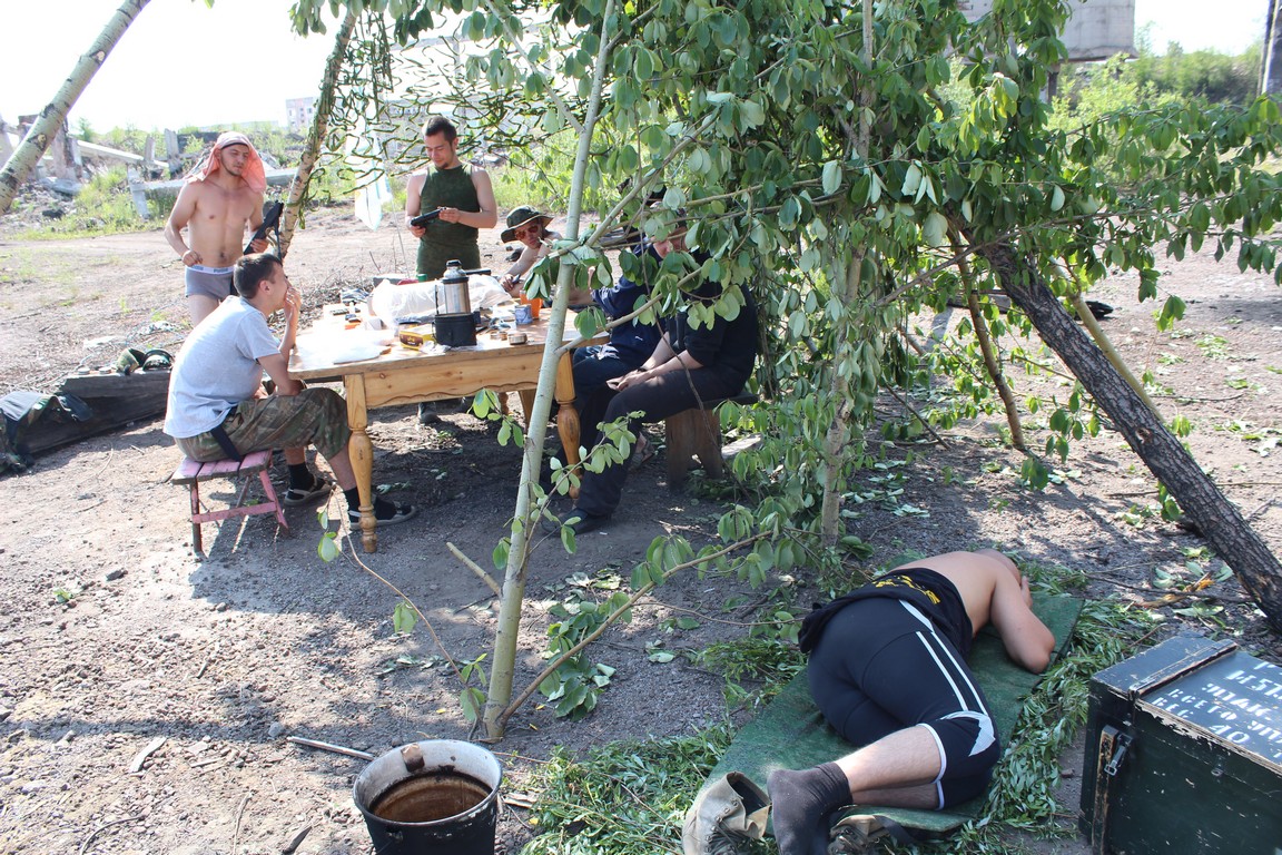 Протоптав все и вся, спускаемся вниз на лавочку. Сидишь, а в воздухе пахнет помесью елочек и плюшек/ватрушек/сосисок – видимо дух работающего Пищекомбината еще дает о себе знать. Тут же от скуки проводим вери-лайт-хард: это когда оружие и броня уже уехали на базу, а пули еще остались и ими можно покидать в соседа. В воздухе начинают сгущаться местные шерстистые комары, в желудке черная дыра готовится взорваться, и тут подъезжает машина. Дорога на базу проходит под разговоры о городе и духе Олонхо.