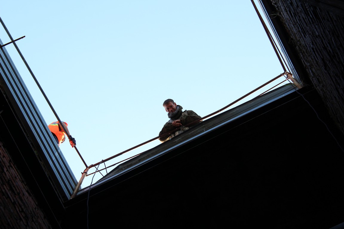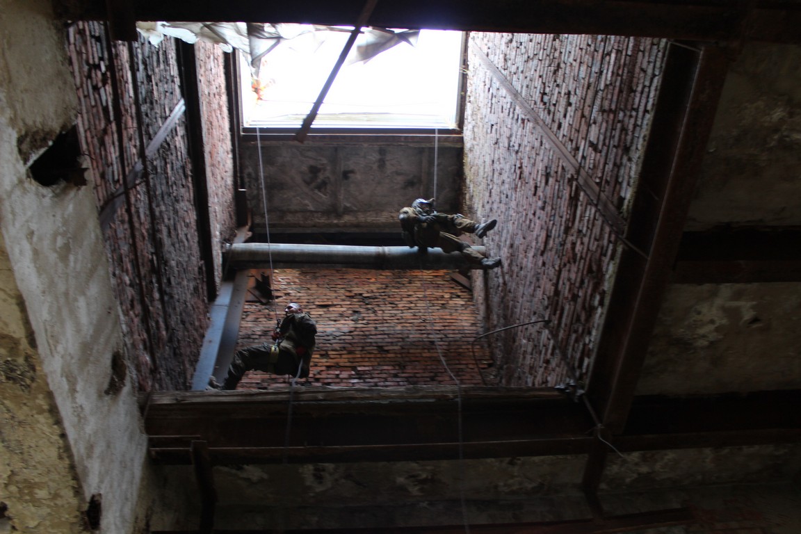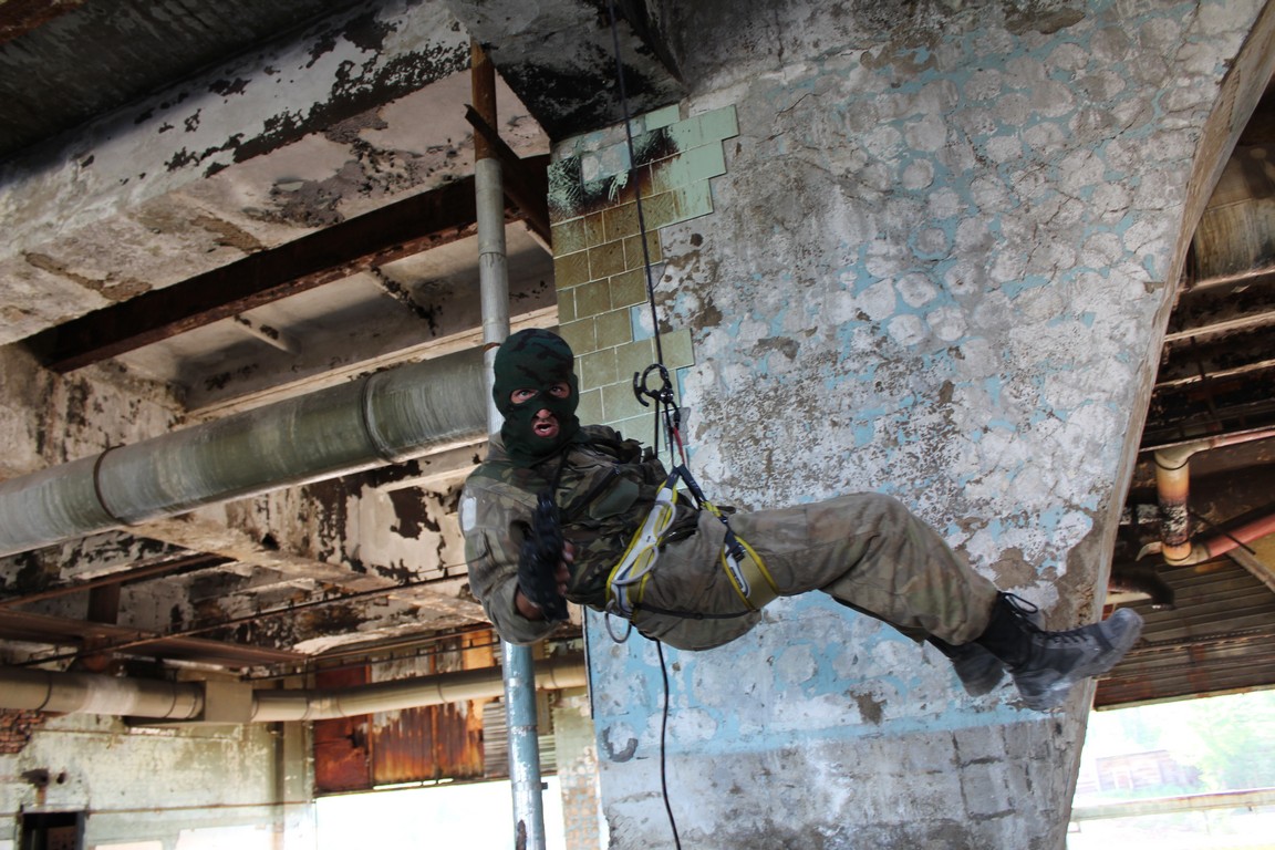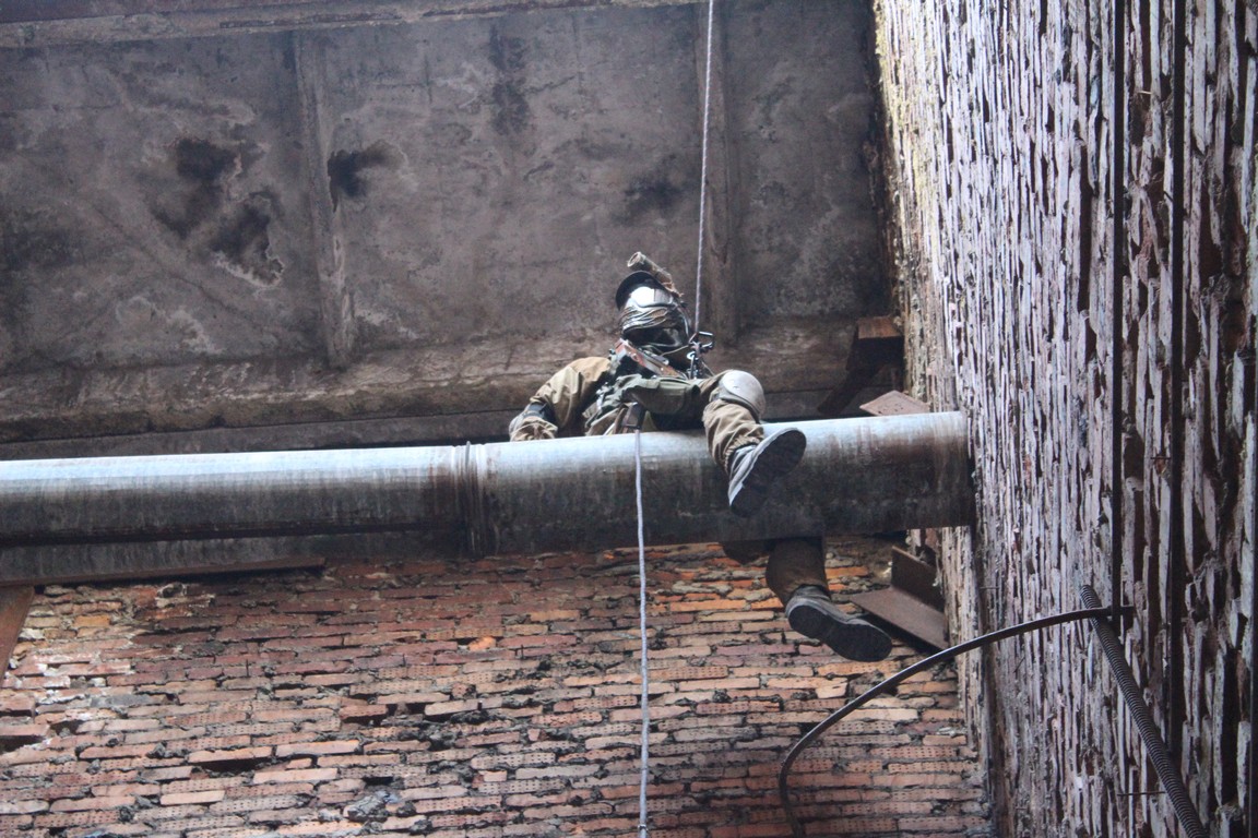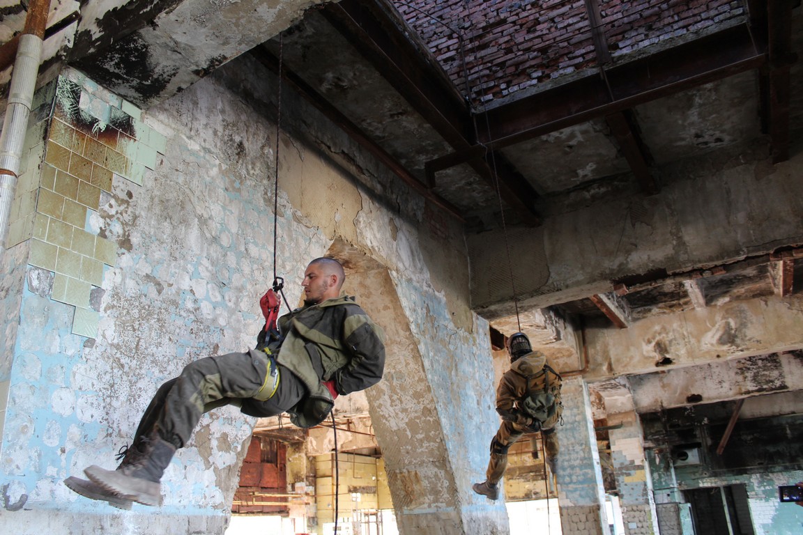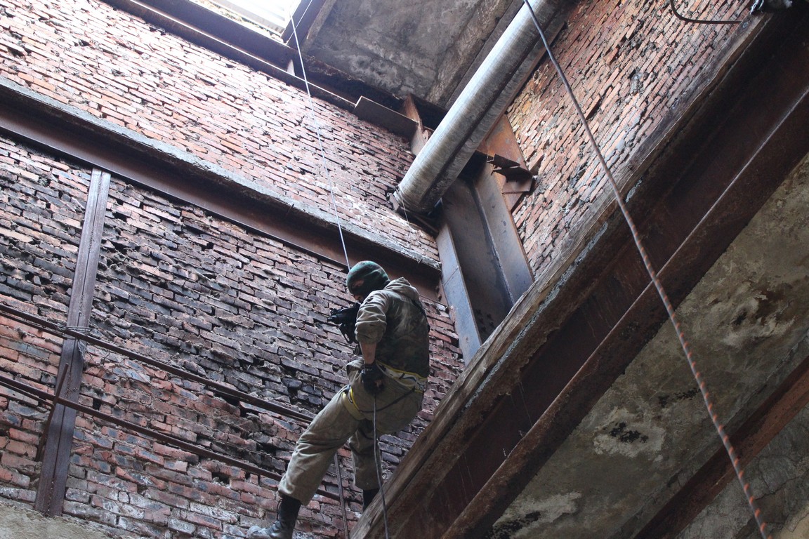 Пока все обсуждали игровые моменты, каким-то образом под уговоры Кирилла я оказался наверху. Честно, очень не люблю высоту, а тут еще и подталкивают спускаться на веревке. Через 5 минут плотных уговоров и инструктажа я все-таки смог перелезть через ограждения и медленно и коряво начал спуск. Спецназовец пока из меня тут никудышный, но впечатлений выше крыши. Первый спуск удался.