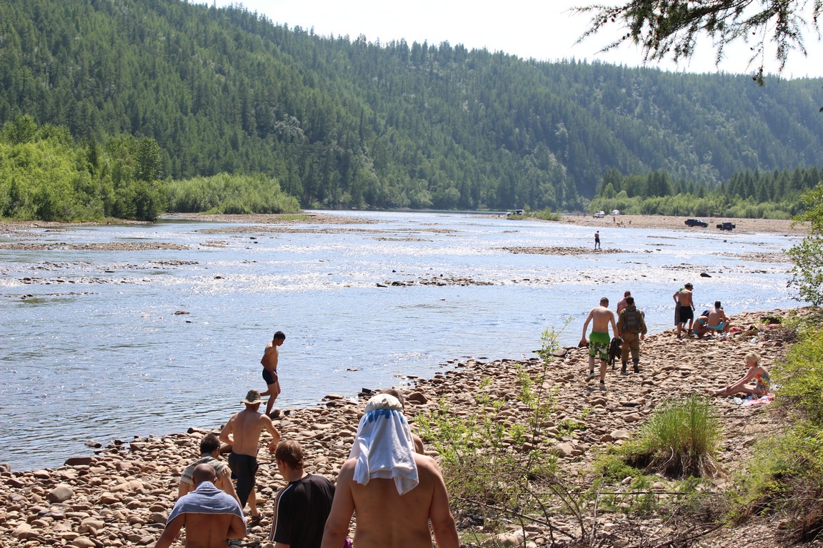 Ехать удобно, но с закрытыми дверьми очень жарко. Чувствуешь себя как в сауне, пот льется по спине ручьем. Радовало, что где-то впереди нас ждала река. Уже на обратной разведанной дороге ехали с открытыми дверьми, доставка с повышенным комфортом. Проезжающие люди нервно выглядывали полной головой из машин с возгласами «Ни *beep* себе там людей». К слову, люди в Нерюнгри до жути любопытные, в дороге за дни турнира часто замечали, что тебе местные проезжающие водители чуть ли не заглядывают в рот. Может местные к этому и привыкли, но на фоне наших жителей это было заметно.