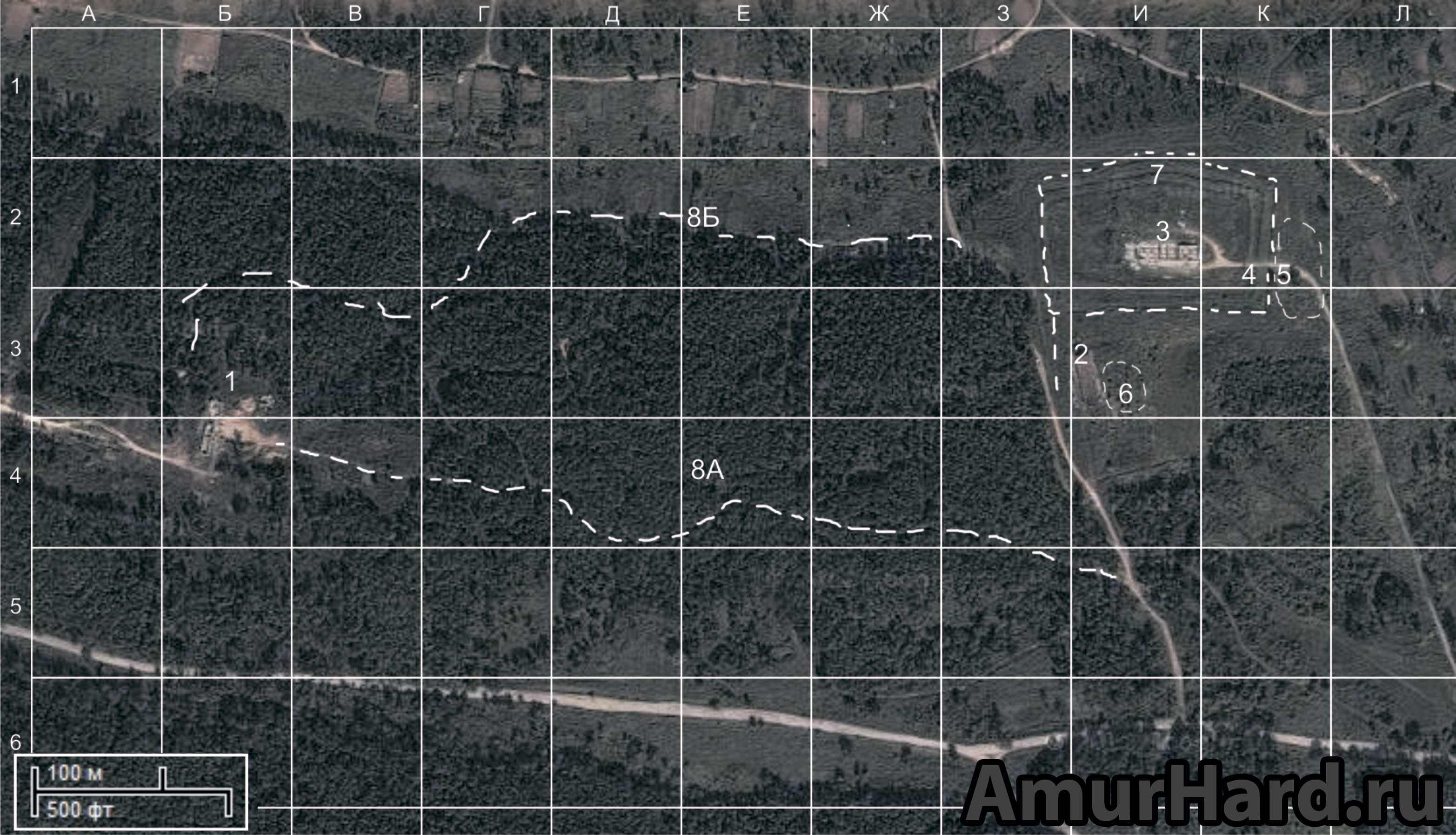 В ходе первоначальной разведки местности была найдена точка 1 (если быть точнее сначала была найдена точка 1, а потом уже и все остальное). Добраться до нее можно дорогами 8А и 8Б. По дороге любуемся пейзажами, лесом, сопками, оврагами-окопами и рядом других занимательных объектов. Стоит отметить, что летом на территории проводятся различные мото-вело гонки, а зимой здесь проходит путь лыжной трассы.
